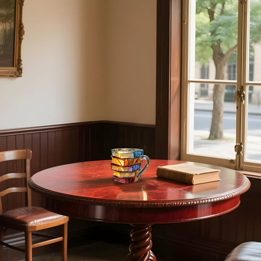 Handgemaakte 3D boeken mok – kleurrijk design – uniek cadeau
