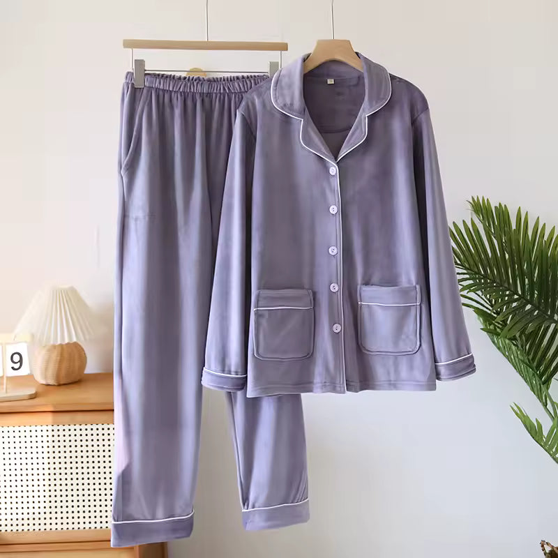 Deze 2-delige pyjama set voor dames bestaat uit een button-up shirt met een borstzak en wijdere broeken voor ultiem comfort. Ontworpen met een losse pasvorm, biedt deze set beweegvrijheid terwijl je er tegelijkertijd chic uitziet. Een veelzijdige pyjama set, perfect voor loungen, ontspanning of een rustgevende nachtrust.