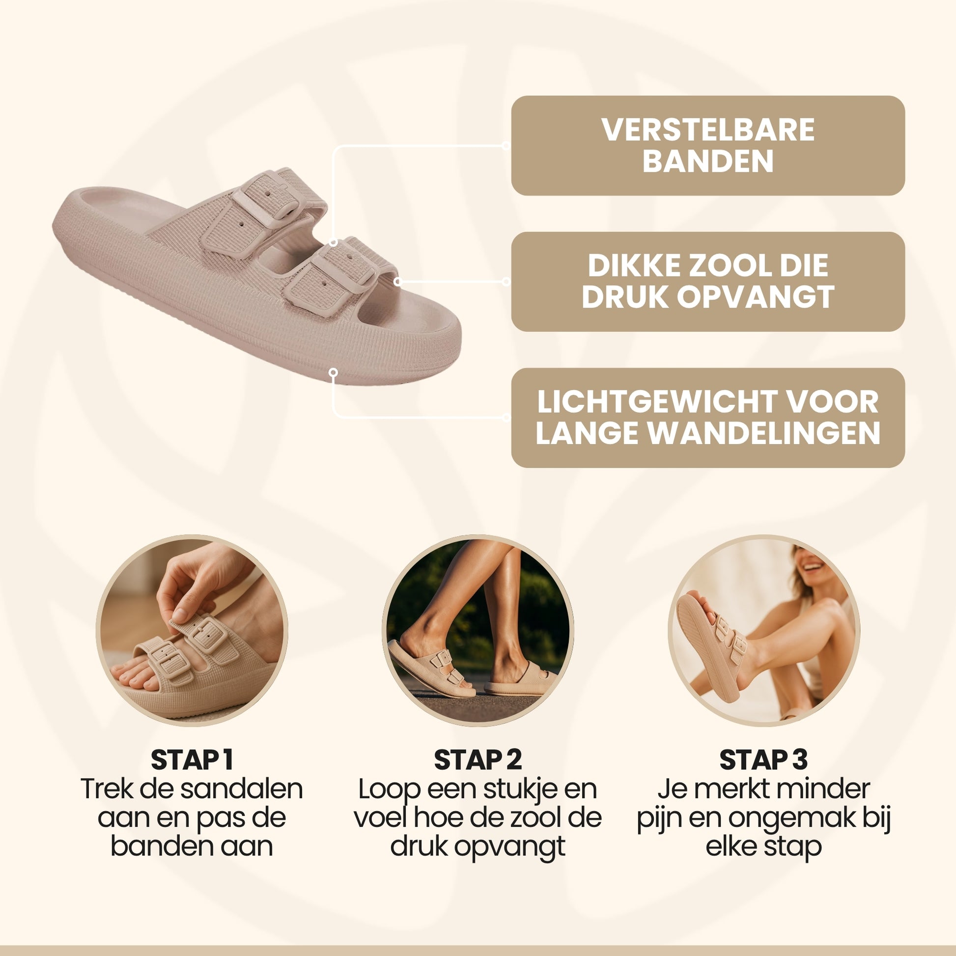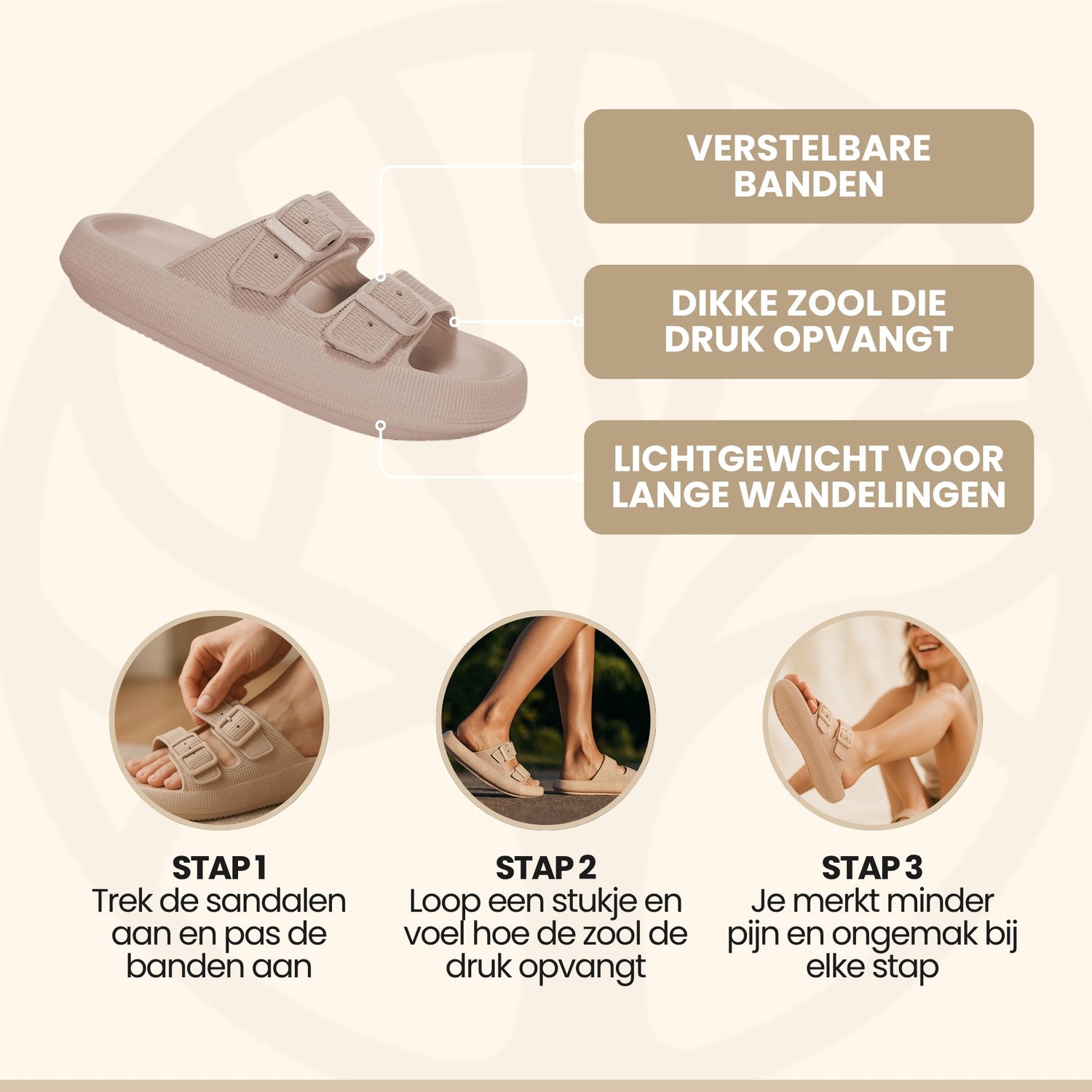 Na een dag boodschappen doen of een wandeling voel je het meteen: branderige zolen, strakke banden en pijnlijke drukplekken. Je voeten lijken alles op te vangen. Je merkt dat gewone slippers gewoon niet genoeg doen. En dan komen de blaren meestal ook nog eens terug.