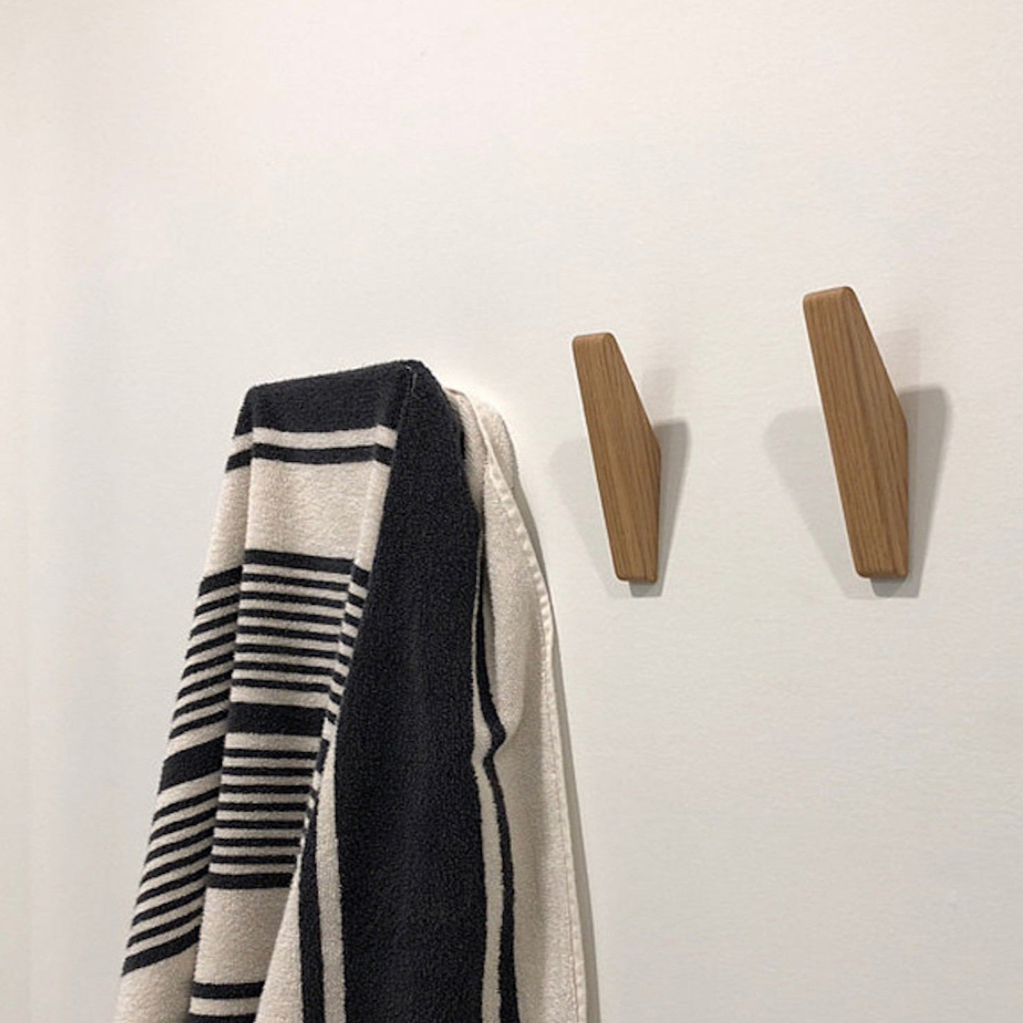 Deze houten muurhaak met een schuin ontwerp biedt een stevige en ruimtebesparende oplossing voor het ophangen van jassen, tassen en accessoires. De vorm zorgt ervoor dat items goed blijven hangen, terwijl het natuurlijke materiaal eenvoudig combineert met verschillende interieurstijlen en verkrijgbaar is in meerdere varianten.