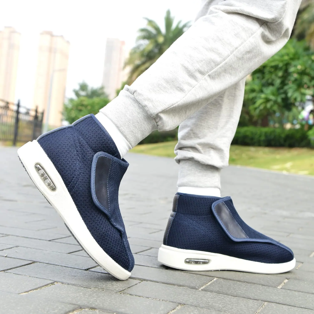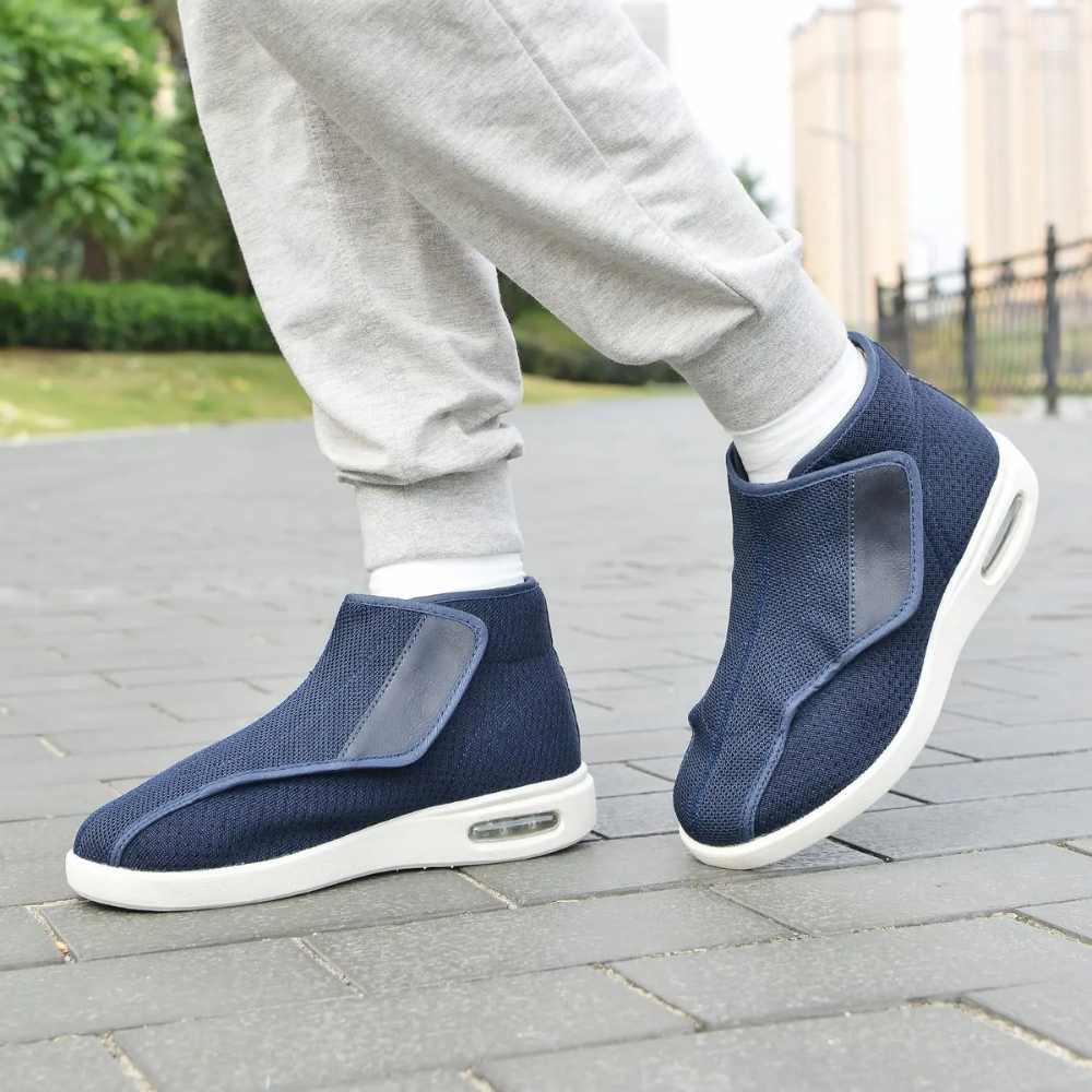 - Verstelbaar Brede Pasvorm – Overlappende klittenbandsluitingen zorgen voor een perfecte pasvorm bij gezwollen of brede voeten.