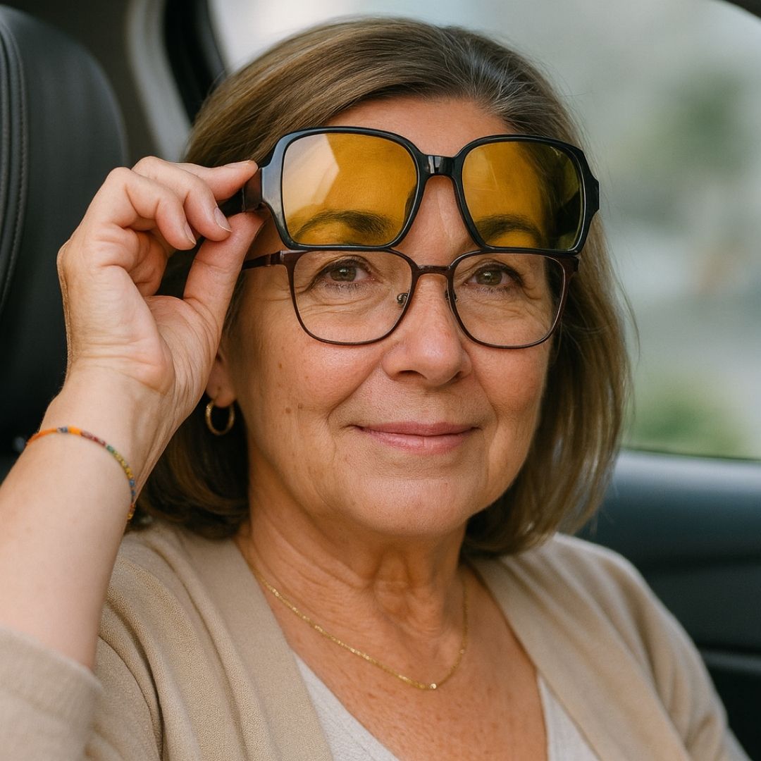 Met het slimme ontwerp van de OptiNight bril kun je deze eenvoudig over je gewone bril dragen. Geen bril? Geen probleem – de OptiNight werkt ook als zelfstandige nachtfahrbril.