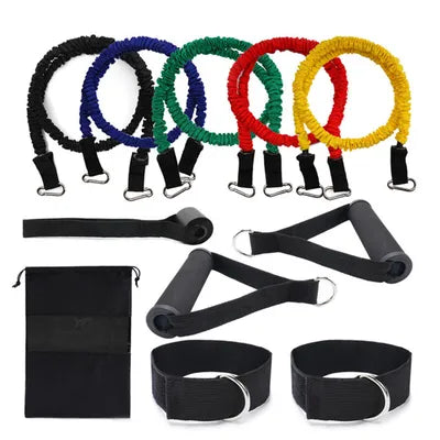 Deze set van weerstandsbanden biedt veelzijdige training voor kracht en flexibiliteit. De banden zijn in verschillende sterktes beschikbaar, van licht tot zwaar, waardoor ze geschikt zijn voor zowel beginners als gevorderden. De set wordt geleverd met handgrepen en een draagtas, ideaal voor thuisgebruik of voor onderweg.